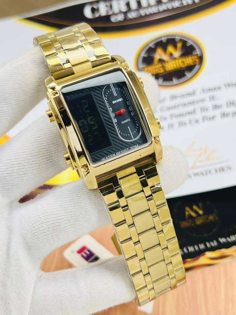 The Skemi Dual Time Watch AW-011 is a multifunctional timepiece designed for those who need style, accuracy, and practicality all in one. With dual time display, day & date functionality, and built-in light and alarms, this watch is perfect for professionals, travellers, and active lifestyles. Crafted with a steel chain and a power lock mechanism, it’s as durable as it is stylish.
